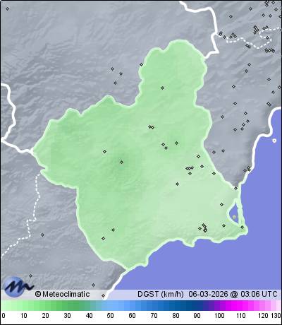 | Murcia - P.Tocinos | 43 | 11,9 | 12,1 | 11,8 | 93 | 94 | 93 | 1.010 | 1.010 | 1.010 | 1 SSW | 12 | - | 70,3 | |