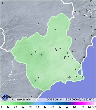 | Cartagena - Los Barreros | 42 | 8,5 | 9,1 | 8,4 | 63 | 63 | 59 | 1.012 | 1.013 | 1.012 | 1 NNW | 5 | - | 105,6 | |