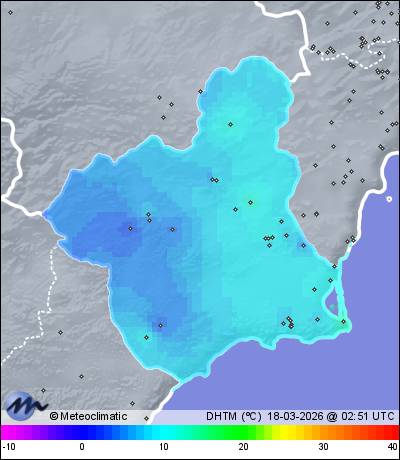 | Caravaca - La Encarnacion | 741 | 2,8 | 2,9 | 2,4 | 67 | 69 | 67 | 1.012 | 1.012 | 1.012 | 3 WNW | 6 | - | 128,4 | |