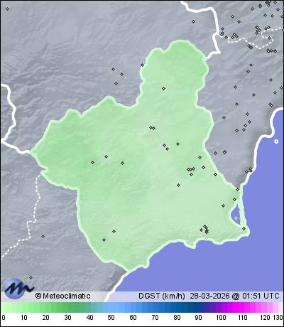 | Murcia - P.Tocinos | 43 | 10,8 | 11,4 | 10,8 | 84 | 84 | 82 | 1.019 | 1.019 | 1.019 | 4 ENE | 11 | - | 105,6 | |