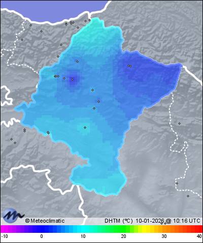 | Actualizado:09-01-2026 23:59 UTC | 10,4°C 67% | 13,1 °C / 89% | | 7,3°C / 61% | | 16 km/h W | | 105 km/h | | 1.021 hPa | | 29,6 mm |