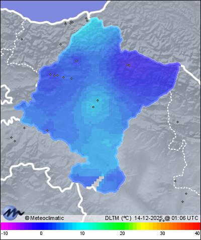| Actualizado: 05:00 UTC | 15,2°C 63% | 18,4 °C / 95% | | 7,7°C / 49% | | 8 km/h E | | 35 km/h | | 1.013 hPa |
