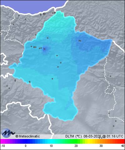 | Actualizado:07-03-2026 23:58 UTC | 8,5°C 91% | 15,5 °C / 96% | | 8,2°C / 67% | | Calma | | 48 km/h | | 1.025 hPa |