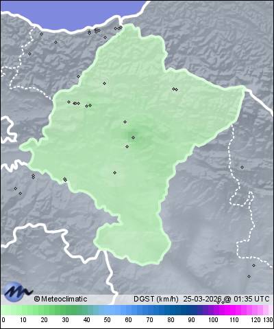 | Actualizado:24-03-2026 23:58 UTC | 7,9°C 93% | 18,0 °C / 96% | | 3,3°C / 41% | | Calma | | 9 km/h |
