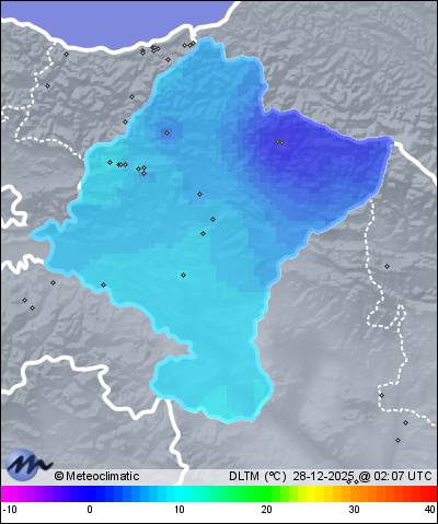 | Actualizado: 22:29 UTC | 4,4°C 94% | 9,2 °C / 99% | | 3,9°C / 74% | | 1.023 hPa |