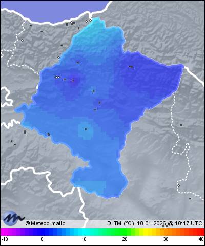 | Actualizado: 10:28 UTC | 9,5°C 85% | 10,8 °C / 88% | | 7,6°C / 65% | | 1 km/h NNW | | 39 km/h | | 1.025 hPa | | 3,7 mm |