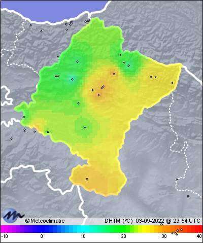 | 03-09-2022 | | | Máx. | Mín. | | | Temperatura | 23,7 | 16,3 | °C | | Humedad | 87 | 64 | % | | Viento | 23 | n/a | km/h | | Presión | 1.017 | 1.013 | hPa |
