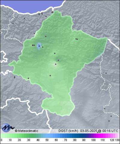 | 02-05-2025 | | | Máx. | Mín. | | | Temperatura | 17,3 | 10,1 | °C | | Humedad | 94 | 45 | % | | Viento | 57 | n/a | km/h | | Presión | 1.018 | 1.012 | hPa | | Precipitación | 0,0 | mm |