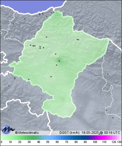 | 17-05-2025 | | | Máx. | Mín. | | | Temperatura | 19,3 | 3,8 | °C | | Humedad | 97 | 68 | % | | Viento | 23 | n/a | km/h | | Presión | 1.020 | 1.016 | hPa | | Precipitación | 0,0 | mm |