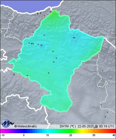 | 21-05-2025 | | | Máx. | Mín. | | | Temperatura | 18,7 | 8,1 | °C | | Humedad | 95 | 63 | % | | Viento | 29 | n/a | km/h | | Presión | 1.024 | 1.020 | hPa |