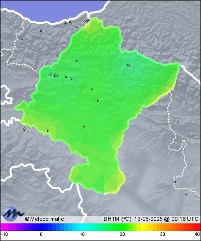| 12-06-2025 | | | Máx. | Mín. | | | Temperatura | 30,9 | 15,9 | °C | | Humedad | 92 | 48 | % | | Viento | 23 | n/a | km/h | | Presión | 1.014 | 1.010 | hPa | | Precipitación | 7,2 | mm |