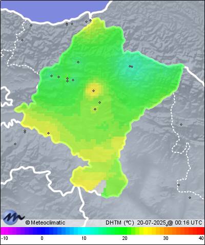 | 19-07-2025 | | | Máx. | Mín. | | | Temperatura | 25,6 | 15,9 | °C | | Humedad | 93 | 55 | % | | Viento | 30 | n/a | km/h | | Presión | 1.015 | 1.008 | hPa |