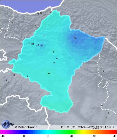 | 22-09-2025 | | | Máx. | Mín. | | | Temperatura | 16,1 | 6,8 | °C | | Humedad | 97 | 64 | % | | Viento | 37 | n/a | km/h | | Presión | 1.021 | 1.018 | hPa | | Precipitación | 3,8 | mm |