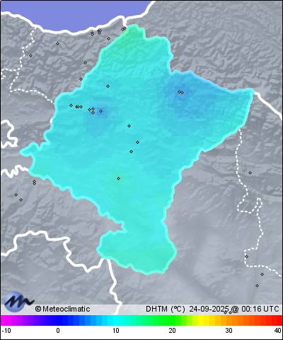 | 23-09-2025 | | | Máx. | Mín. | | | Temperatura | 14,7 | 9,2 | °C | | Humedad | 97 | 54 | % | | Viento | 35 | n/a | km/h | | Presión | 1.025 | 1.021 | hPa |