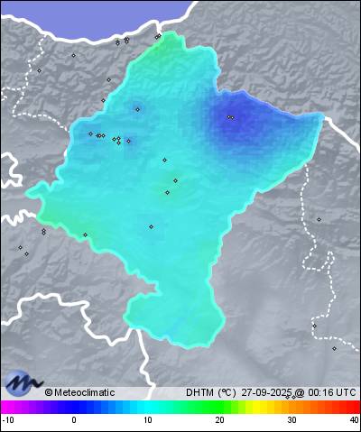 | 26-09-2025 | | | Máx. | Mín. | | | Temperatura | 17,5 | -0,1 | °C | | Humedad | 98 | 49 | % | | Viento | 15 | n/a | km/h | | Presión | 1.023 | 1.020 | hPa | | Precipitación | 0,0 | mm |