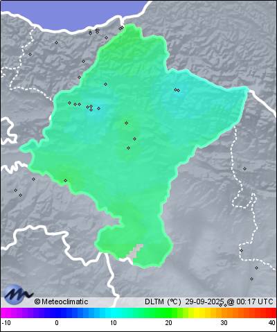 | 28-09-2025 | | | Máx. | Mín. | | | Temperatura | 23,1 | 9,9 | °C | | Humedad | 93 | 44 | % | | Viento | 15 | n/a | km/h | | Presión | 1.021 | 1.016 | hPa | | Precipitación | 0,0 | mm |