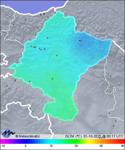 | 30-09-2025 | | | Máx. | Mín. | | | Temperatura | 19,2 | 9,1 | °C | | Humedad | 95 | 66 | % | | Viento | 27 | n/a | km/h | | Presión | 1.025 | 1.023 | hPa |