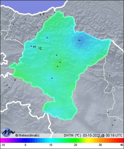 | 02-10-2025 | | | Máx. | Mín. | | | Temperatura | 23,2 | -0,8 | °C | | Humedad | 97 | 43 | % | | Viento | 16 | n/a | km/h | | Presión | 1.026 | 1.023 | hPa | | Precipitación | 0,0 | mm |