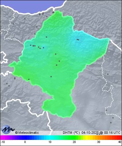 | 03-10-2025 | | | Máx. | Mín. | | | Temperatura | 22,3 | 9,8 | °C | | Humedad | 88 | 48 | % | | Viento | 19 | n/a | km/h | | Presión | 1.023 | 1.021 | hPa | | Precipitación | 0,0 | mm |