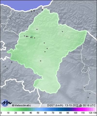 12-10-2025 | | Máx. | Mín. | | Temperatura | 23,2 | 8,3 | °C | Humedad | 97 | 52 | % | Viento | 33 | n/a | km/h | Presión | 1.026 | 1.020 | hPa |