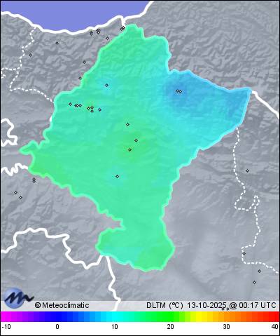 12-10-2025 | | Máx. | Mín. | | Temperatura | 22,3 | 7,8 | °C | Humedad | 97 | 45 | % | Viento | 20 | n/a | km/h | Presión | 1.026 | 1.021 | hPa | Precipitación | 0,0 | mm |