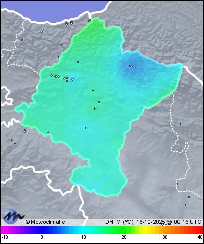 15-10-2025 | | Máx. | Mín. | | Temperatura | 21,5 | 11,3 | °C | Humedad | 98 | 61 | % | Viento | 23 | n/a | km/h | Presión | 1.021 | 1.018 | hPa | Precipitación | 0,0 | mm |