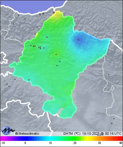 18-10-2025 | | Máx. | Mín. | | Temperatura | 23,4 | 6,7 | °C | Humedad | 97 | 53 | % | Viento | 28 | n/a | km/h | Presión | 1.022 | 1.018 | hPa |