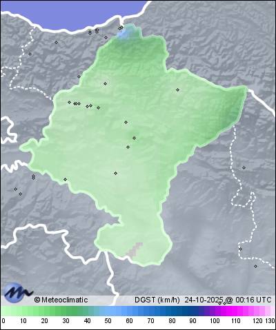 | 23-10-2025 | | | Máx. | Mín. | | | Temperatura | 18,6 | 7,5 | °C | | Humedad | 96 | 49 | % | | Viento | 56 | n/a | km/h | | Presión | 1.019 | 1.005 | hPa |