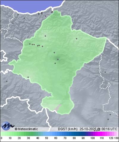 | 24-10-2025 | | | Máx. | Mín. | | | Temperatura | 16,9 | 6,7 | °C | | Humedad | 86 | 43 | % | | Viento | 32 | n/a | km/h | | Presión | 1.021 | 1.015 | hPa | | Precipitación | 0,0 | mm |