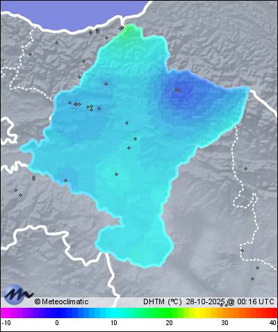 | 27-10-2025 | | | Máx. | Mín. | | | Temperatura | 14,0 | 5,4 | °C | | Humedad | 96 | 64 | % | | Viento | 17 | n/a | km/h | | Presión | 1.028 | 1.024 | hPa | | Precipitación | 0,0 | mm |