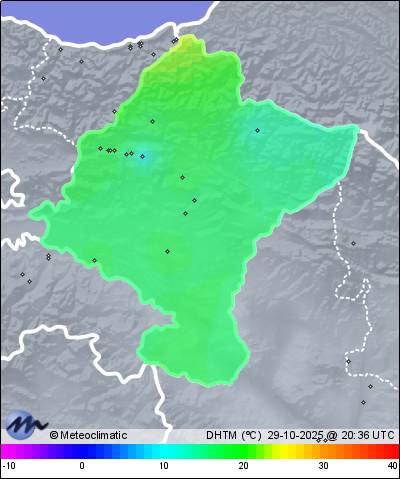| Actualizado: 17:40 UTC | 16,1°C 82% | 16,9 °C / 90% | | 11,7°C / 69% | | Calma | | 32 km/h | | 1.007 hPa |