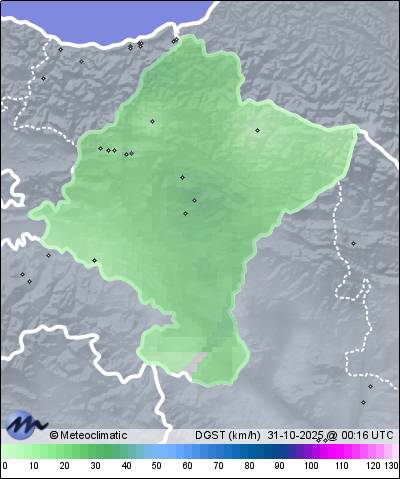 | 30-10-2025 | | | Máx. | Mín. | | | Temperatura | 18,5 | 8,1 | °C | | Humedad | 97 | 70 | % | | Viento | 31 | n/a | km/h | | Presión | 1.014 | 1.011 | hPa |
