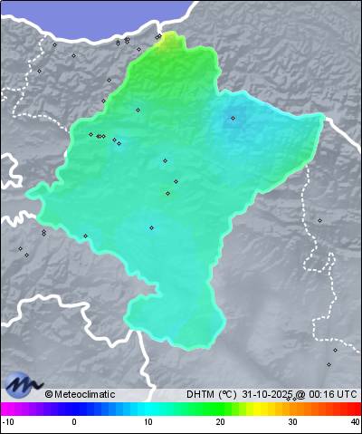 | 30-10-2025 | | | Máx. | Mín. | | | Temperatura | 18,5 | 8,1 | °C | | Humedad | 97 | 70 | % | | Viento | 31 | n/a | km/h | | Presión | 1.014 | 1.011 | hPa |