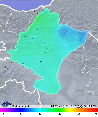 | 30-10-2025 | | | Máx. | Mín. | | | Temperatura | 18,5 | 8,1 | °C | | Humedad | 97 | 70 | % | | Viento | 31 | n/a | km/h | | Presión | 1.014 | 1.011 | hPa |