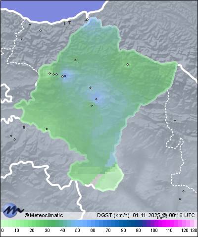 | Act. | Máx. | Mín. | Act. | Máx. | Mín. | Act. | Máx. | Mín. | Act. | Máx.  | Hoy | Año |  |  | Dorrao | 610 | 16,3 | 17,1 | 11,7 | 71 | 88 | 67 | 1.014 | 1.015 | 1.012 | 34 ESE | 74 | - | 902,4 |  |  |  | Biurrun | 590 | 15,6 | 17,8 | 12,0 | 66 | 84 | 58 | 1.015 | 1.017 | 1.014 | 26 SSE | 49 | - | 469,4 |  |  |  | Miranda de Arga | 310 | 17,7 | 18,9 | 9,7 | 64 | 90 | 61 | 1.014 | 1.016 | 1.012 | 21 SSE | 47 | - | 320,4 |  |  |  | Iturmendi | 523 | 17,2 | 18,2 | 12,7 | 67 | 81 | 59 | 1.013 | 1.015 | 1.012 | 7 ENE | 46 | x | x |  |  |  | Lizarraga Ergoiena | 615 | 15,8 | 17,0 | 12,4 | 64 | 78 | 59 | 1.014 | 1.016 | 1.013 | 17 NE | 44 | - | 137,2 |  |  |  | Altsasu | 534 | 16,7 | 18,8 | 11,9 | 64 | 79 | 54 | 1.013 | 1.015 | 1.012 | 13 SW | 42 | - | 805,2 |  |  |  | Bakaiku | 532 | 16,5 | 18,0 | 11,2 | 64 | 81 | 53 | 1.013 | 1.015 | 1.011 | 11 ENE | 40 | - | 814,4 |  |  |  | Urdiain | 521 | 16,8 | 19,7 | 11,1 | 61 | 82 | 52 | 1.013 | 1.015 | 1.012 | 4 S | 40 | - | 573,7 |  |  |  | Añorbe | 585 | 16,2 | 17,4 | 12,3 | 62 | 81 | 56 | 1.017 | 1.019 | 1.016 | 9 ESE | 39 | - | 524,8 |  |  |  | Lekunberri | 570 | 16,2 | 16,8 | 11,7 | 72 | 90 | 70 | 1.013 | 1.014 | 1.012 | 13 ESE | 34 | - | 874,4 |  |  |  | Aurizberri-Camping Urrobi | 862 | 14,1 | 15,1 | 5,6 | 70 | 95 | 65 | 1.016 | 1.017 | 1.014 | 18 E | 29 | - | 1.170,0 |  |  |  | Mendavia | 360 | 17,5 | 21,5 | 10,2 | 64 | 88 | 50 | 1.013 | 1.015 | 1.011 | 2 S | 27 | - | 340,0 |  |  |  | Leizego Andiamendi | 1100 | 10,6 | 12,2 | 7,6 | 87 | 95 | 83 | 1.013 | 1.014 | 1.012 | 3 ESE | 16 | 0,4 | 1.169,4 |  |  |  | Aurizberri - Espinal | 872 | 14,0 | 14,7 | 9,8 | 72 | 89 | 68 | 1.014 | 1.016 | 1.013 | x | x | - | 1.108,0 |  |  |  | Lizarragako benta | 1035 | 11,5 | 14,0 | 8,2 | 80 | 97 | 72 | 1.015 | 1.017 | 1.014 | x | x | 0,1 | 348,5 |  |
