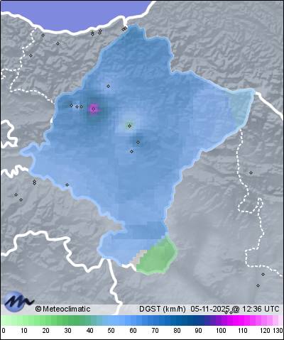 | Actualizado: 10:13 UTC | 12,9°C 82% | 12,9 °C / 95% | | 8,0°C / 76% | | 3 km/h E | | 36 km/h | | 1.014 hPa |