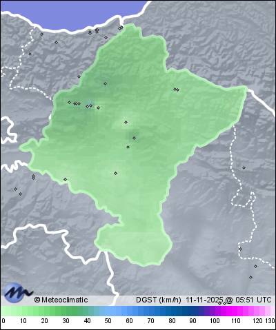 | Aurizberri - Espinal | 872 | 7,1 | 7,1 | 0,4 | 95 | 98 | 95 | 1.018 | 1.020 | 1.018 | 10 NNE | 13 | - | 1.187,8 | |