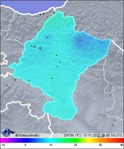| Actualizado: 03:58 UTC | 6,9°C 94% | 6,9 °C / 95% | | 5,3°C / 92% | | Calma | | 7 km/h | | 1.013 hPa | | 0,1 mm |