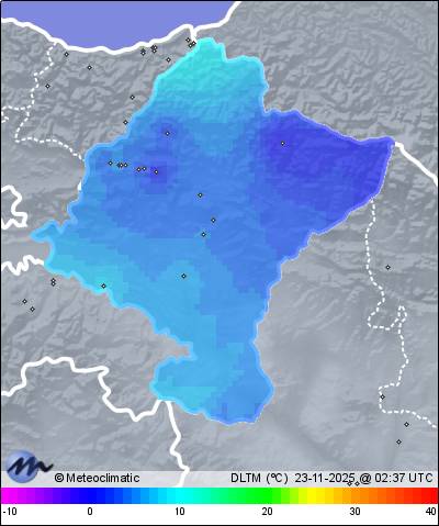 | Actualizado: 01:58 UTC | 3,6°C 82% | 3,7 °C / 83% | | 3,0°C / 80% | | Calma | | 7 km/h | | 1.025 hPa |