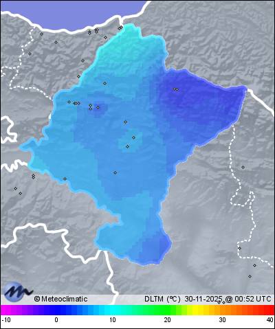 | Actualizado:29-11-2025 23:56 UTC | 5,5°C 88% | 6,2 °C / 88% | | 5,5°C / 85% | | Calma | | 3 km/h | | 1.015 hPa | | 0,8 mm |