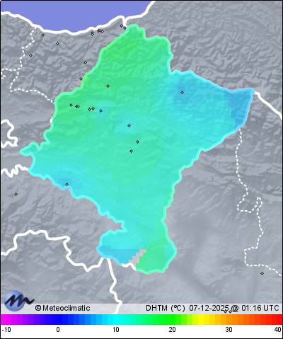 | Actualizado: 00:00 UTC | 8,7°C 91% | 13,2 °C / 96% |  | | 4,8°C / 79% | | Calma | | 11 km/h | | 1.020 hPa | | 0,2 mm |