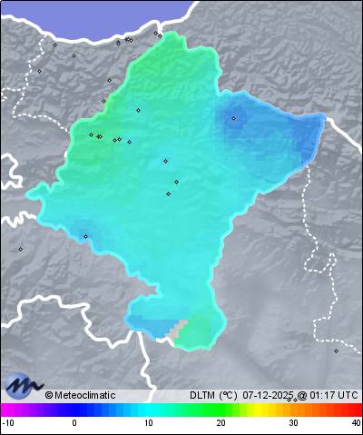 | Actualizado: 00:00 UTC | 8,7°C 91% | 13,2 °C / 96% |  | | 4,8°C / 79% | | Calma | | 11 km/h | | 1.020 hPa | | 0,2 mm |