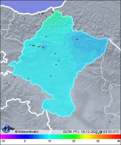 | Actualizado: 02:30 UTC | 8,6°C 93% | 9,6 °C / 93% | | 8,6°C / 90% | | Calma | | 6 km/h | | 1.019 hPa |