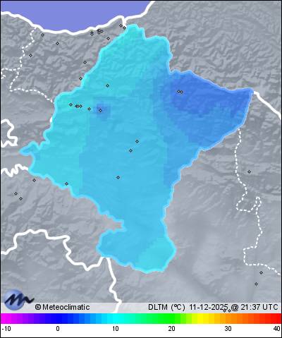 | Actualizado: 00:05 UTC | 11,4°C 95% | 11,6 °C / 96% |  | | 11,4°C / 95% | | Calma | | 3 km/h | | 1.023 hPa |