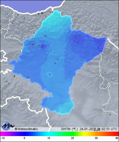 | Actualizado: 00:59 UTC | 3,8°C 86% | 3,8 °C / 88% | | 3,1°C / 86% | | Calma | | 6 km/h | | 995 hPa |