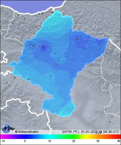 | Actualizado: 00:58 UTC | 3,7°C 84% | 3,8 °C / 92% | | 2,7°C / 83% | | 10 km/h W | | 24 km/h | | 1.002 hPa | | 3,0 mm |