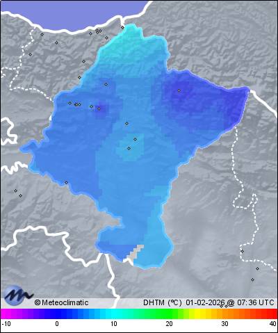 | Actualizado: 05:50 UTC | 2,8°C 97% | 3,5 °C / 97% | | 1,7°C / 95% | | Calma | | 3 km/h | | 1.014 hPa | | 0,2 mm |