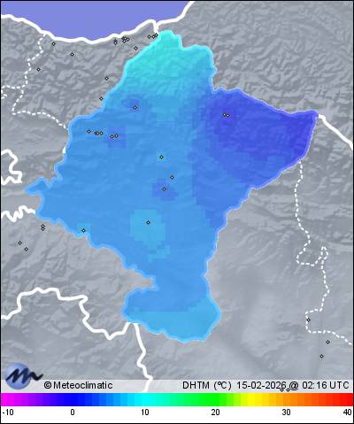 | Actualizado: 00:45 UTC | 3,6°C 95% | 3,6 °C / 96% | | 3,3°C / 94% | | 18 km/h W | | 37 km/h | | 1.025 hPa | | 0,2 mm |