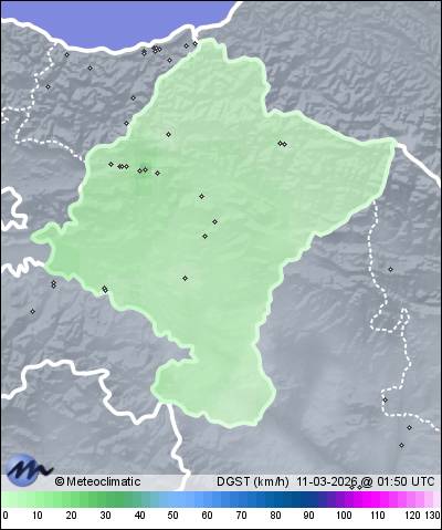 | Actualizado: 00:16 UTC | 10,4°C 88% | 11,2 °C / 88% |  | | 10,4°C / 85% | | Calma | | 2 km/h | | 1.022 hPa |