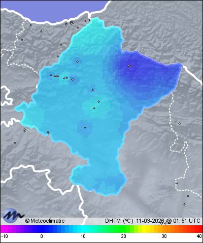 | Actualizado: 00:12 UTC | 10,4°C 89% | 10,8 °C / 89% |  | | 10,3°C / 87% | | Calma | | 5 km/h | | 1.023 hPa |